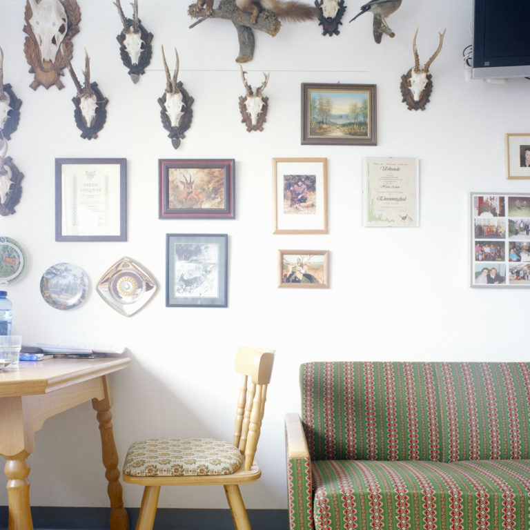 Fritz- Kistler Haus, Pasing. Wohnraum von Herrn Johannes Adam im 5. Stock des in der Einrichtung Fritz- Kistler in der Schmaedelstrasse 29, Muenchen, 19. Januar 2011. Herr Adam, 84, wohnt seit Februar 2010 in der Einrichtung. Ein fruherer Jaeger, Herr Adam, hat als Erinnerung viele Bilder seiner Familie und Andenken aus seiner Zeit als Jaeger in seinem Zimmer aufgehaengt. Fotograf: Evi Lemberger…