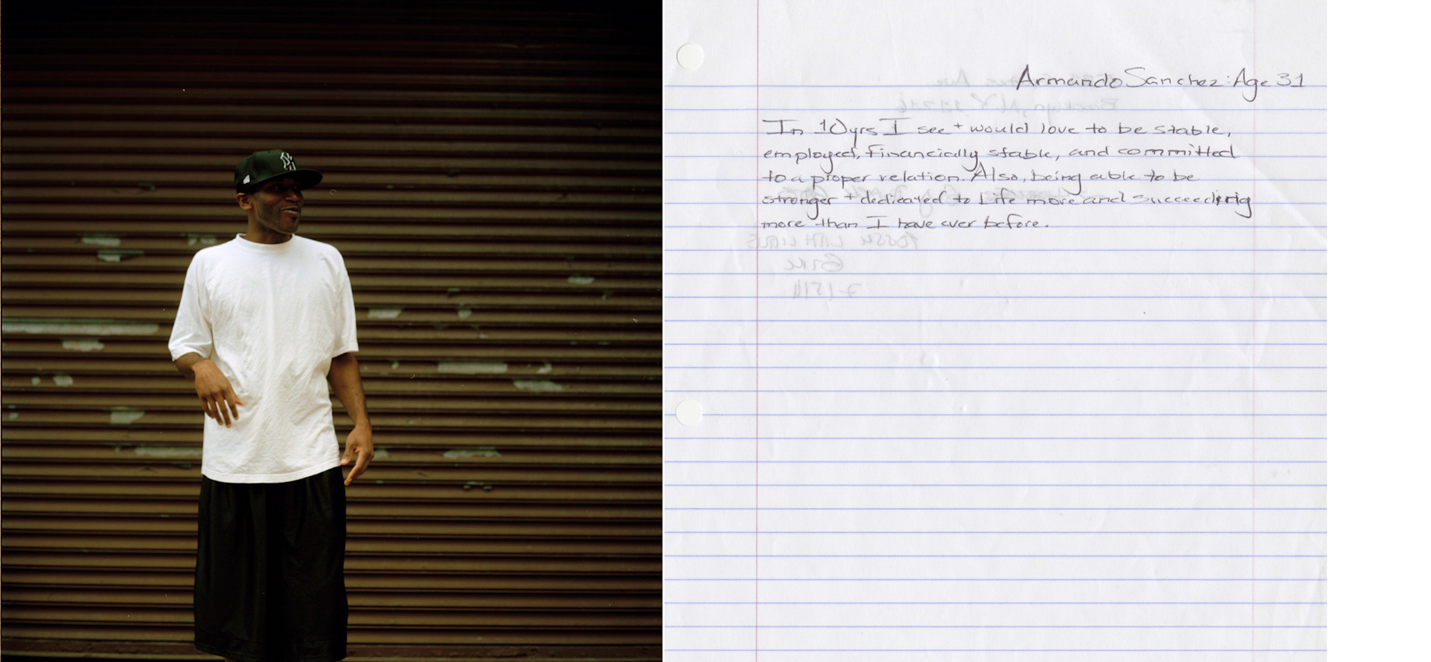 Armando Sanchez, Brooklyn, New York. Armando, 31 standing on the street Gates Avenue in May 7th 2011. He lived for his whole life in the area of Fulton Street. On the day I met him a relative in his family died and the family came togeother to honor the death. (Photograph: Evi Lemberger)…